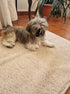 A defined spot by the sofa. Use on the floor or as a sofa topper to keep hair off the cushions. Merino surface resists odour and looks like a throw; low-profile edge so it stays neat and out of the way. Machine-wash on wool cycle