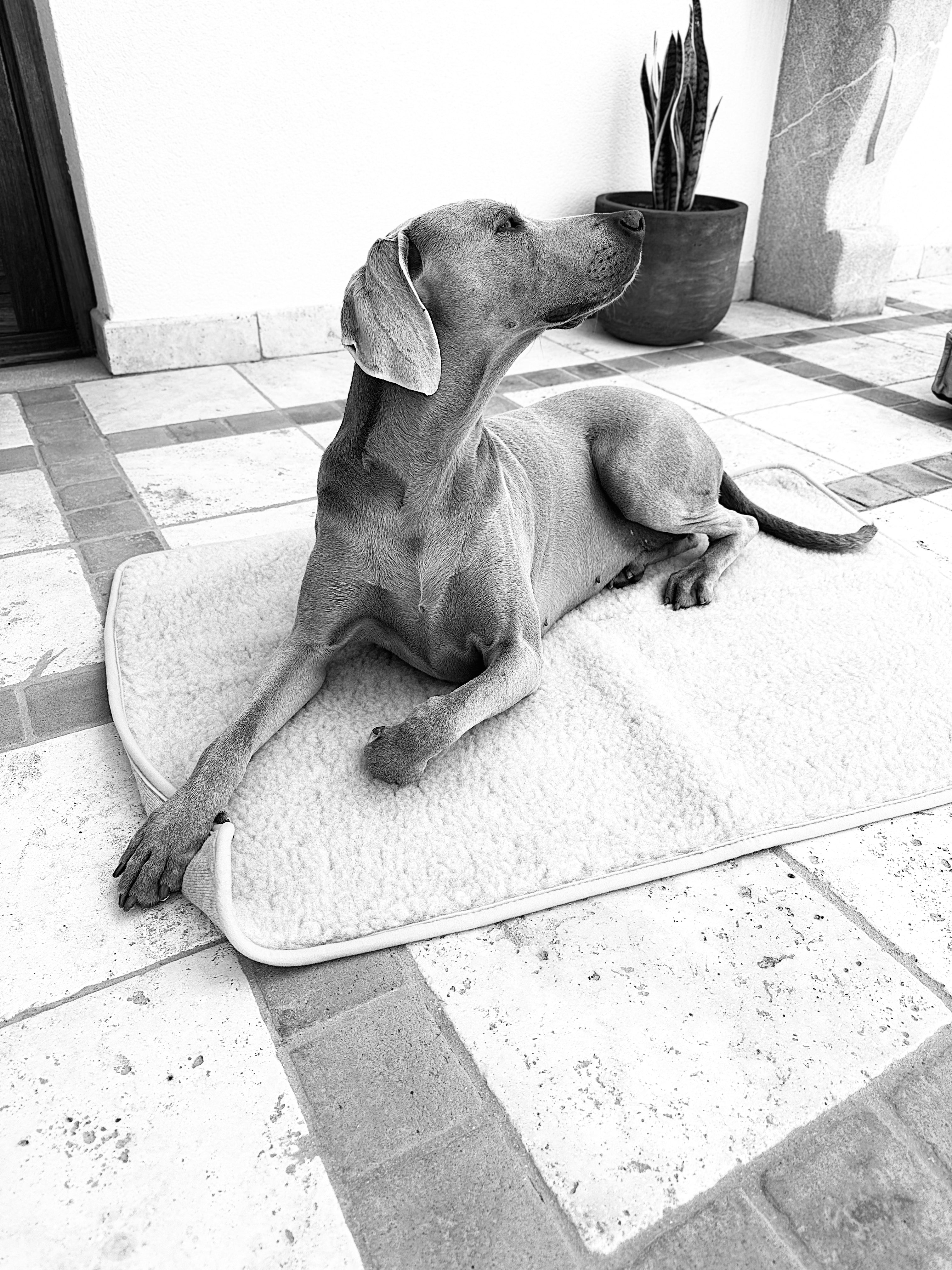 Dogs are family. They follow us from room to room because being close is their comfort. I wanted a simple way to say “this is your place” wherever we are—by the sofa, on it, in the car, even at a café.